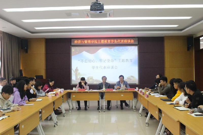 为进一步推动我院的建设与发展,充分听取青年学生对学院工作的意见和建议,更好地发挥同学们参与学院发展、建言献策的积极作用,10月24日下午,经济与管理学院于1号教学楼B座104会议室召开“不忘初心,牢记使命”主题教育学生代表座谈会。经济与管理学院分党委书记赵中利,院长马小南,分党委常务副书记王洪鹏、副院长孙烨、副院长聂云霞,以及各位辅导员老师和40余名学生代表参加会议。