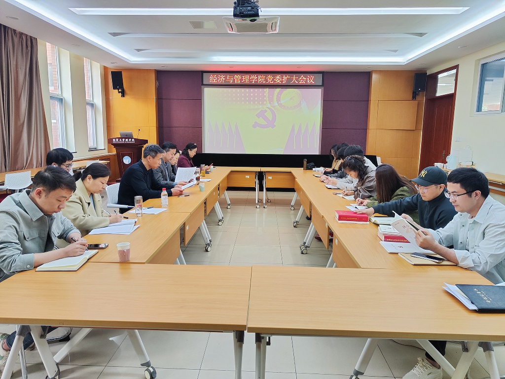 3月24日下午,经济与管理学院在长清校区1B104会议室,召开党委会(扩大)会议,学习习近平总书记关于加强党的作风建设重要论述,学习中央和省委党的建设工作领导小组会议精神,传达学校党的建设工作领导小组(扩大)会议要求,启动部署在全院开展深入贯彻中央八项规定精神学习教育工作。学院党委书记赵晖主持会议。