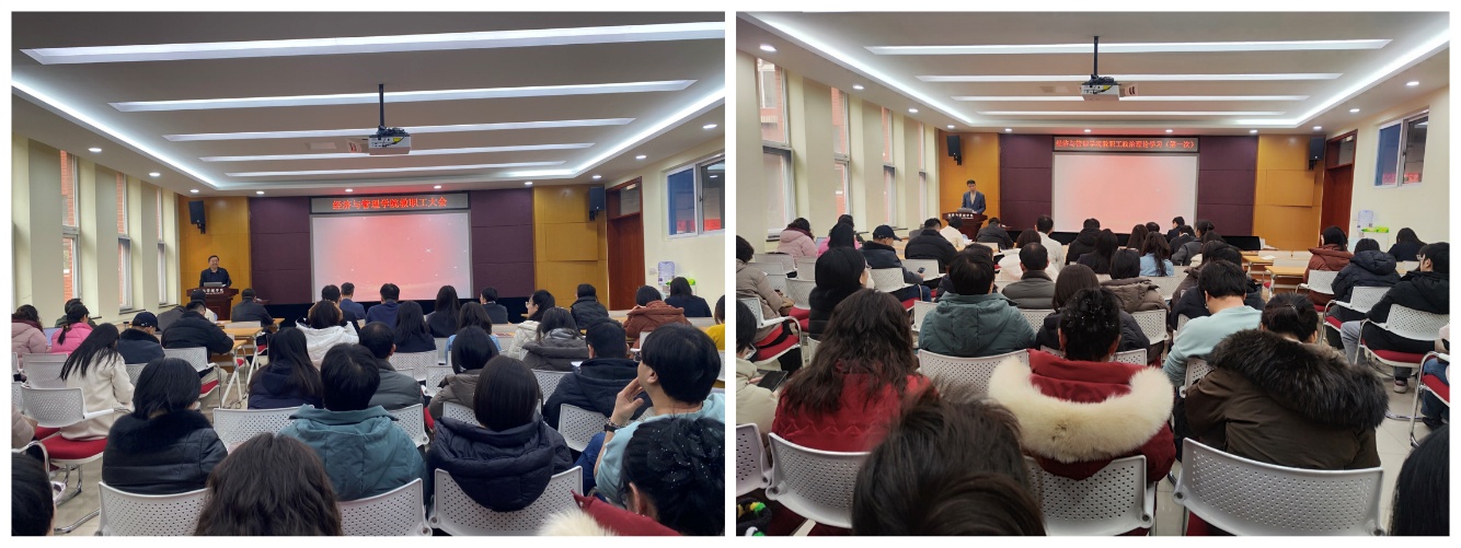 1月14日上午,经济与管理学院在1B104召开学期末工作会议。会议由学院党委书记赵晖主持。