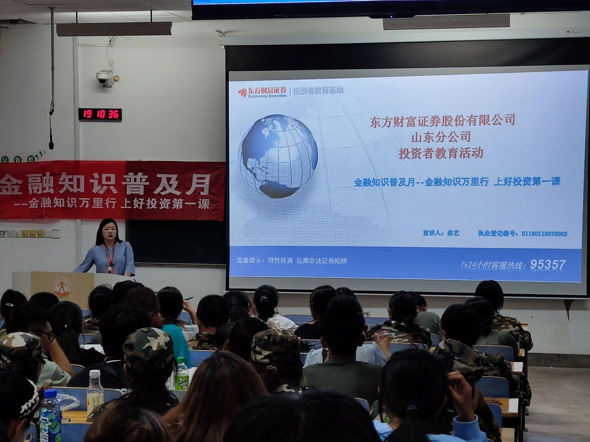 9月22日,东方财富证券投资股份有限公司山东分公司投资者教育活动,“金融知识普及月——金融知识万里行,上好投资第一课” 讲座在1ab201教室顺利举行。