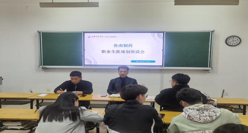2021年11月18日于1A212顺利举行了职业生涯座谈会。本次活动宣讲人为鲁南制药招聘负责人刘志浩、潘晓帅,经济与管理学院部分学生干部参与会议。
