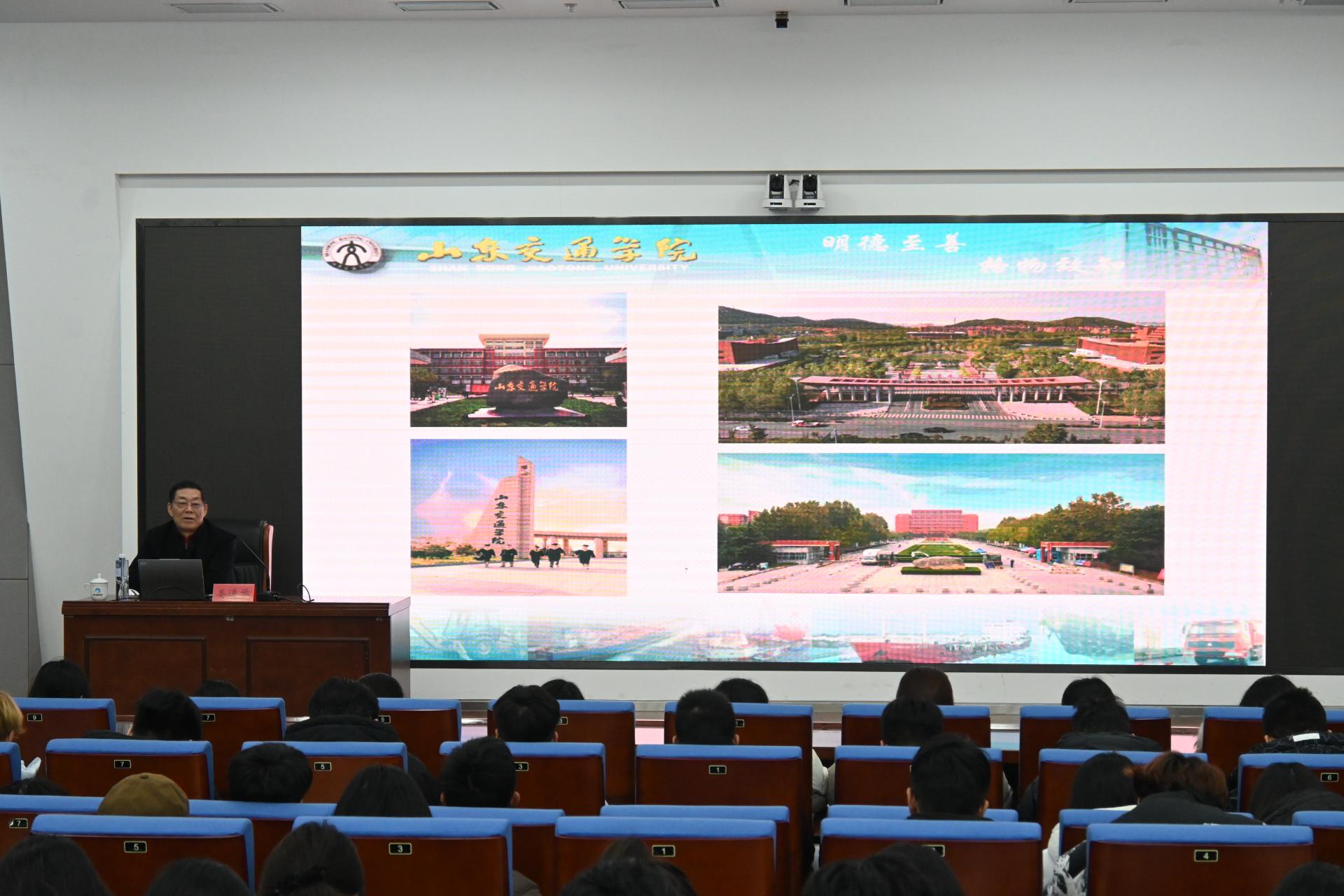 讲座伊始,娄进举结合自身在学校多年的工作经历与深厚的校情积淀,用生动鲜活的案例、翔实珍贵的资料,带领在场师生回溯了学校自创办以来的发展脉络。从建校初期的艰辛探索到学科建设的逐步完善,从人才培养的薪火相传到服务交通行业发展的责任担当,系统梳理了学校在不同历史时期的重大事件、发展成就与精神传承。在校园文化解读环节,娄进举围绕学校的校训、校风,结合校园地标建筑的文化寓意、优秀校友的奋斗故事,深入剖析了学校独特的交通文化基因。通过讲座,让青年师生对学校校史校情有了更为清晰的认知,进一步增强了师生爱校荣校的自豪感。