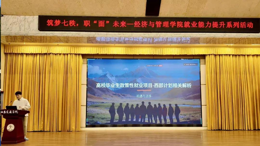 为深入推进学院学生就业指导服务工作,引导广大青年学子树立正确就业观、成才观,鼓励毕业生到基层、到西部、到祖国最需要的地方建功立业,近日,经济与管理学院在学术报告厅举办“筑梦七秩,职‘面’未来”就业能力提升系列活动——政策性就业宣讲专场。学院辅导员刘畅老师主讲,2027届全体毕业生参加活动。