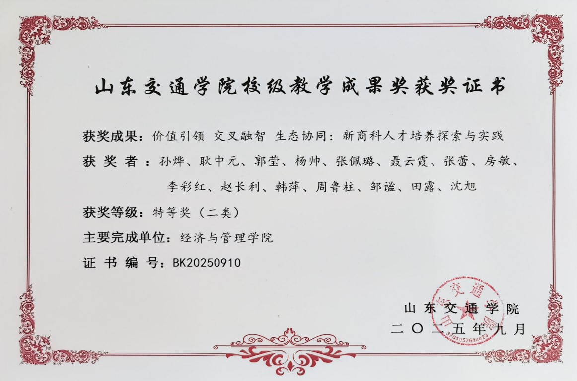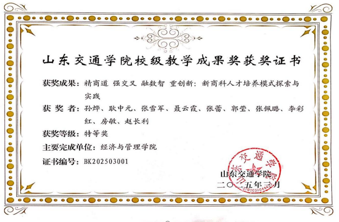 校级教学成果奖特等奖:精商道 强交叉 融数智 重创新:新商科人才培养模式探索与实践