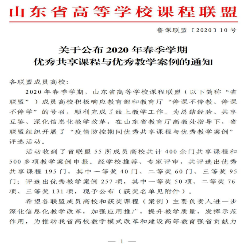 5.2.5 山东省高等学校课程联盟优秀共享课程与优秀教学案例