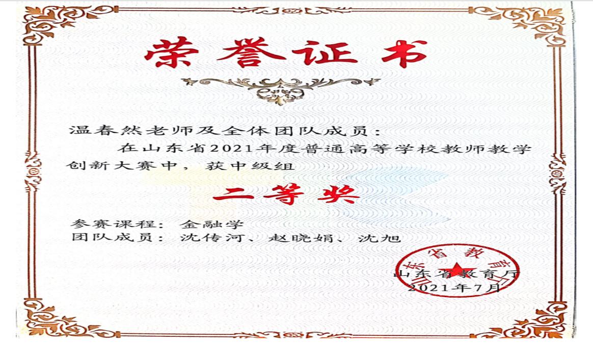 5.2.2 山东省普通高等学校教师教学创新大赛二等奖