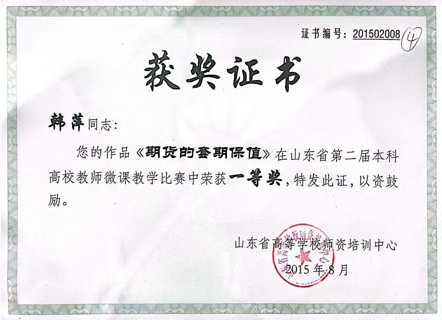 5.2.3 山东省第二届本科高校教师微课教学比赛一等奖