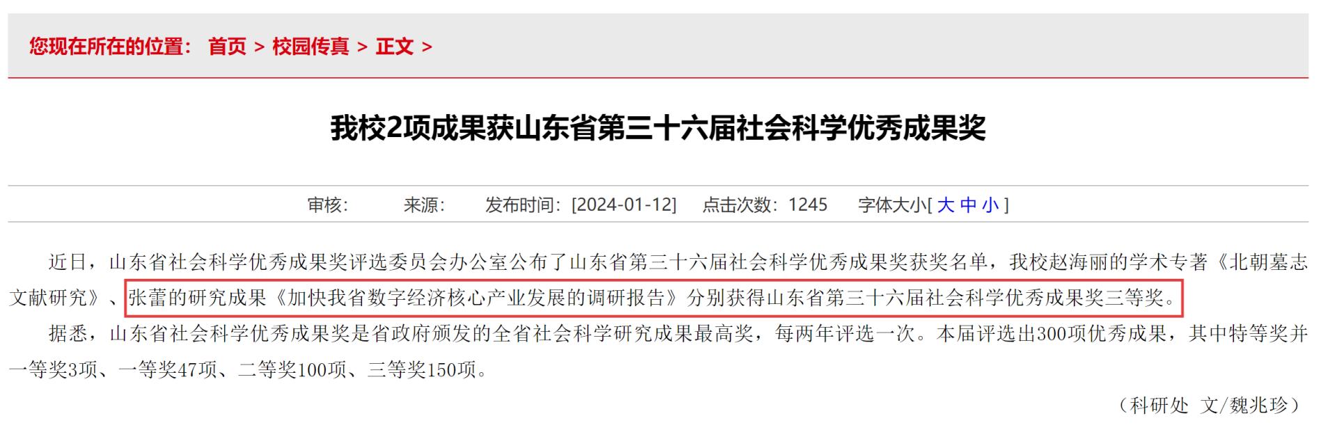 6.10 山东省社会科学优秀成果奖三等奖(2项)